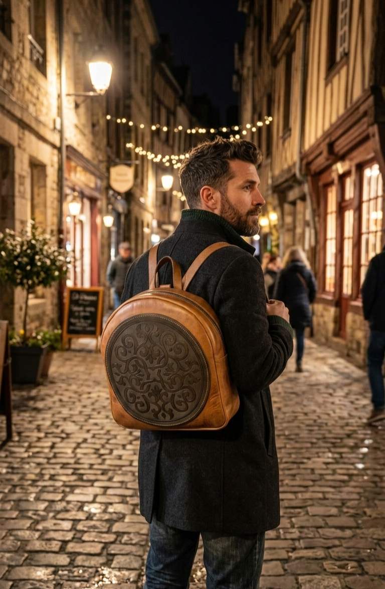 100% All by hand, made to order! A creation made of Spanish cowhide 🙂 Design: 1 compartment, 2 flat pockets, pull-tab, 2 handles, detachable shoulder strap.
