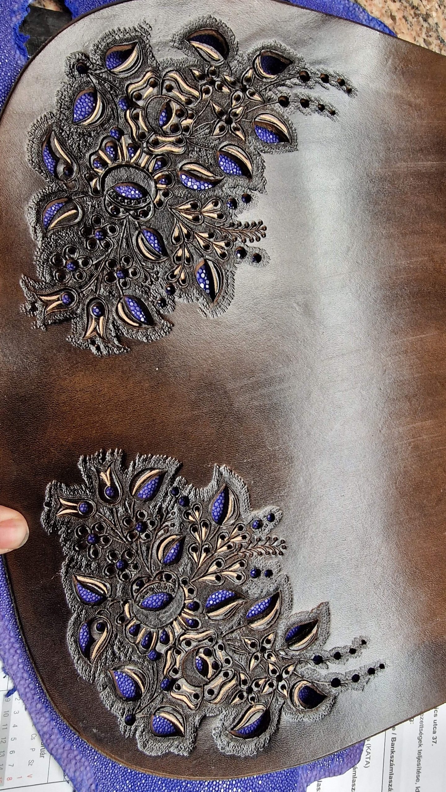 | Technique | Breakthrough, Carving, Cutting, Edge trimming, Lacing, Lining, Mounting, Painting, Punching, Sewing, Stitch edging, Studding |