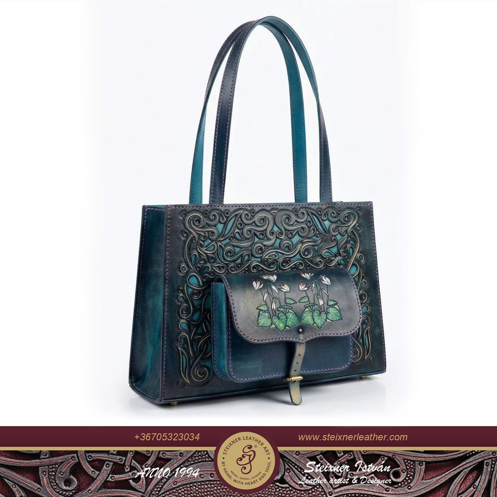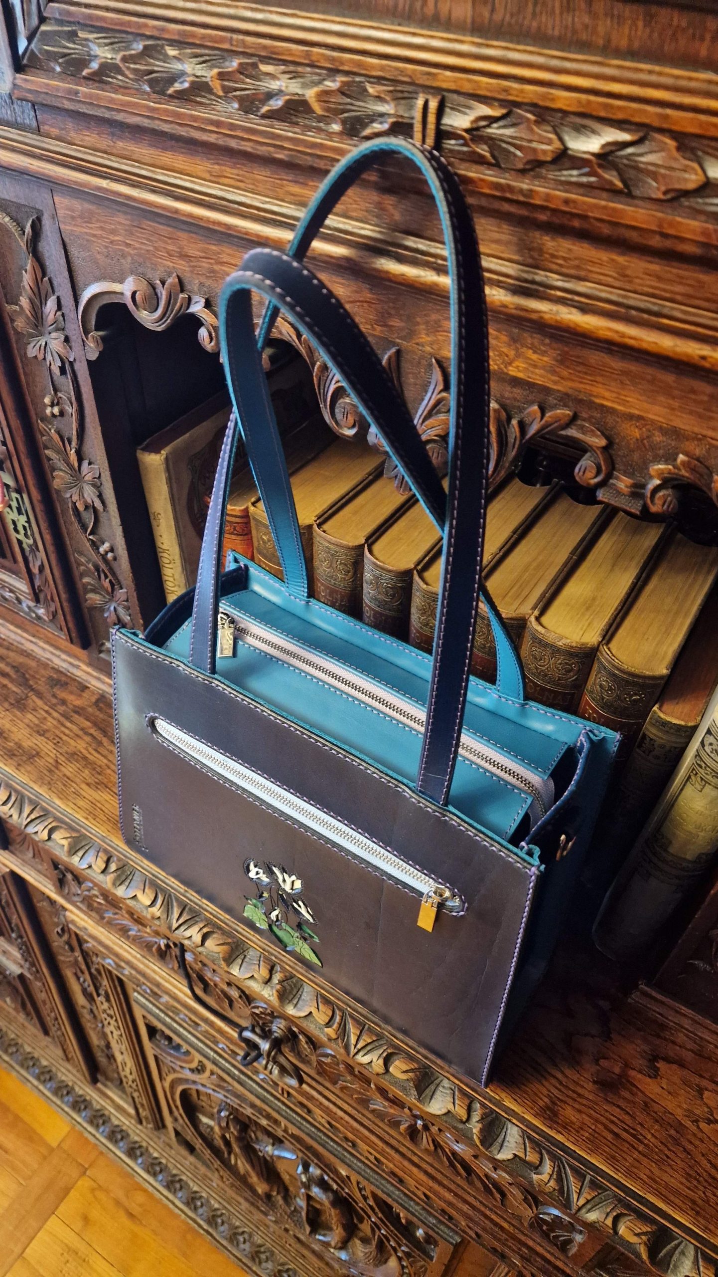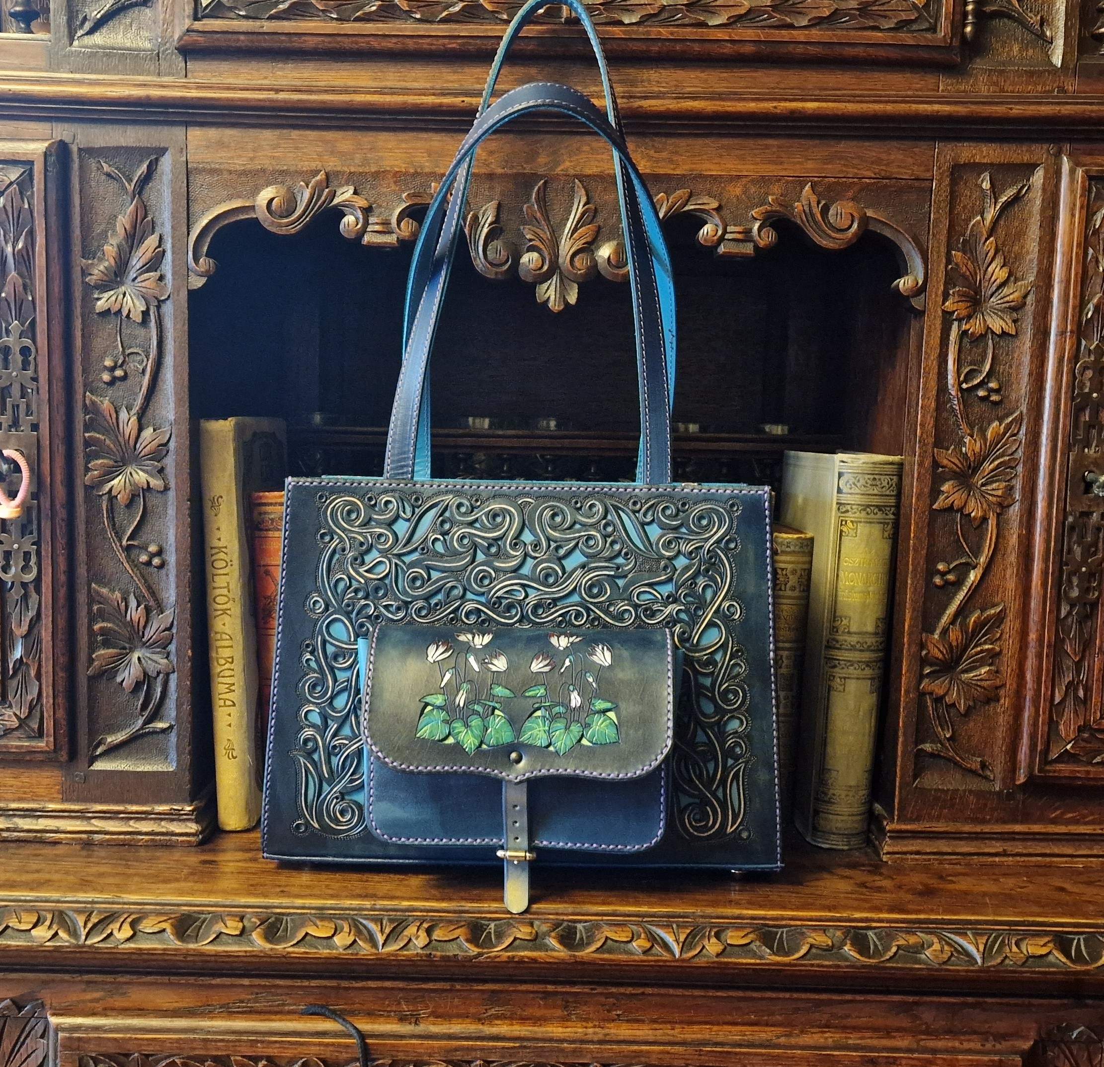 Ez a táska több, mint egy kiegészítő: egy darabka természet, amit magaddal hordhatsz. A finom bőrből, aprólékos kézimunkával készült remekmű minden részlete a szeretetet és az odaadást tükrözi. Az áttört, festett virágminta az áttört díszített kék alapszínen életre kel, mesélve a természet szépségéről.