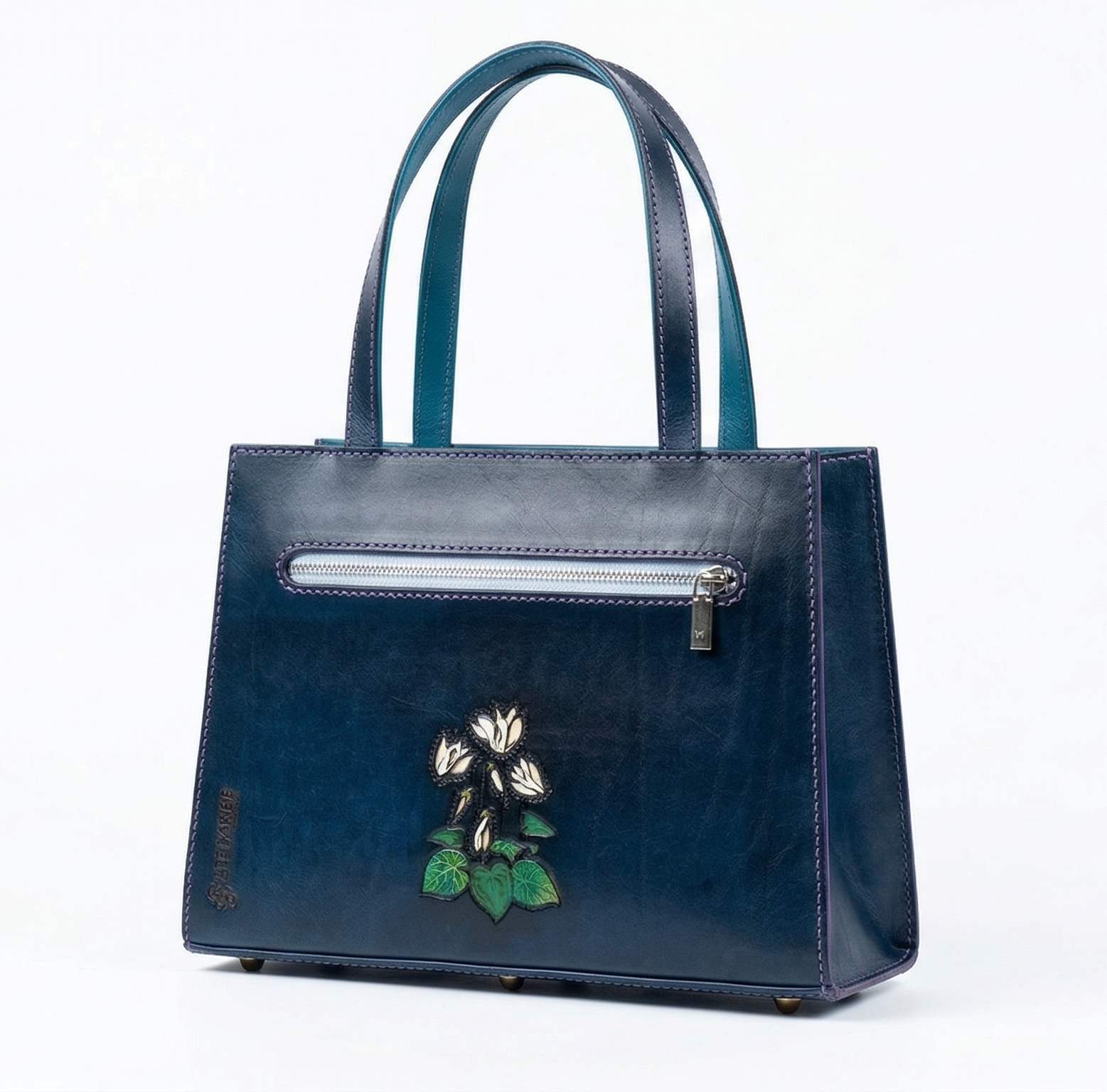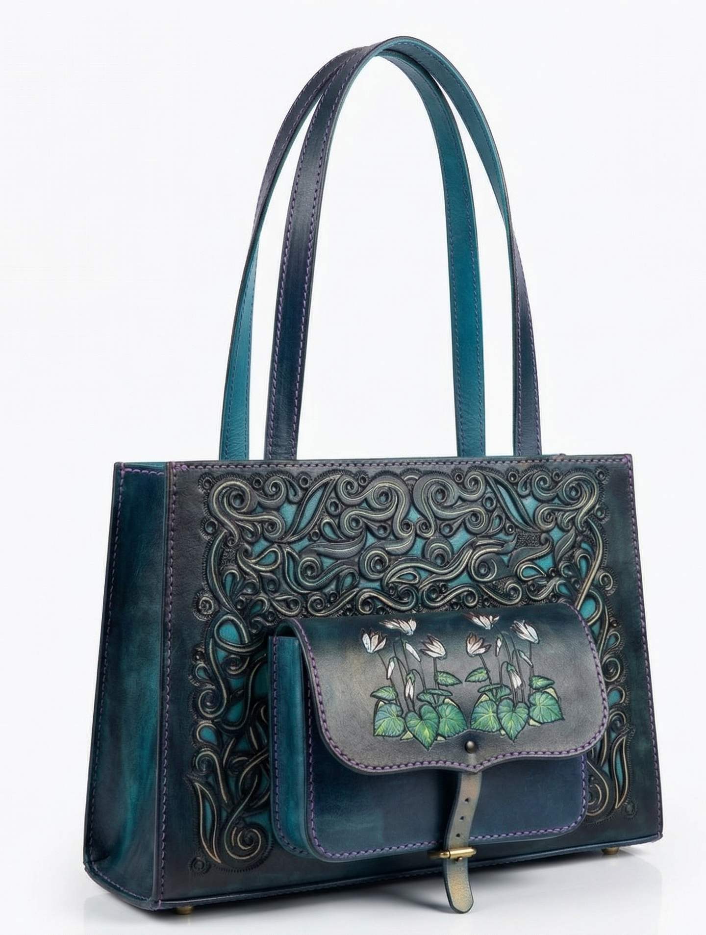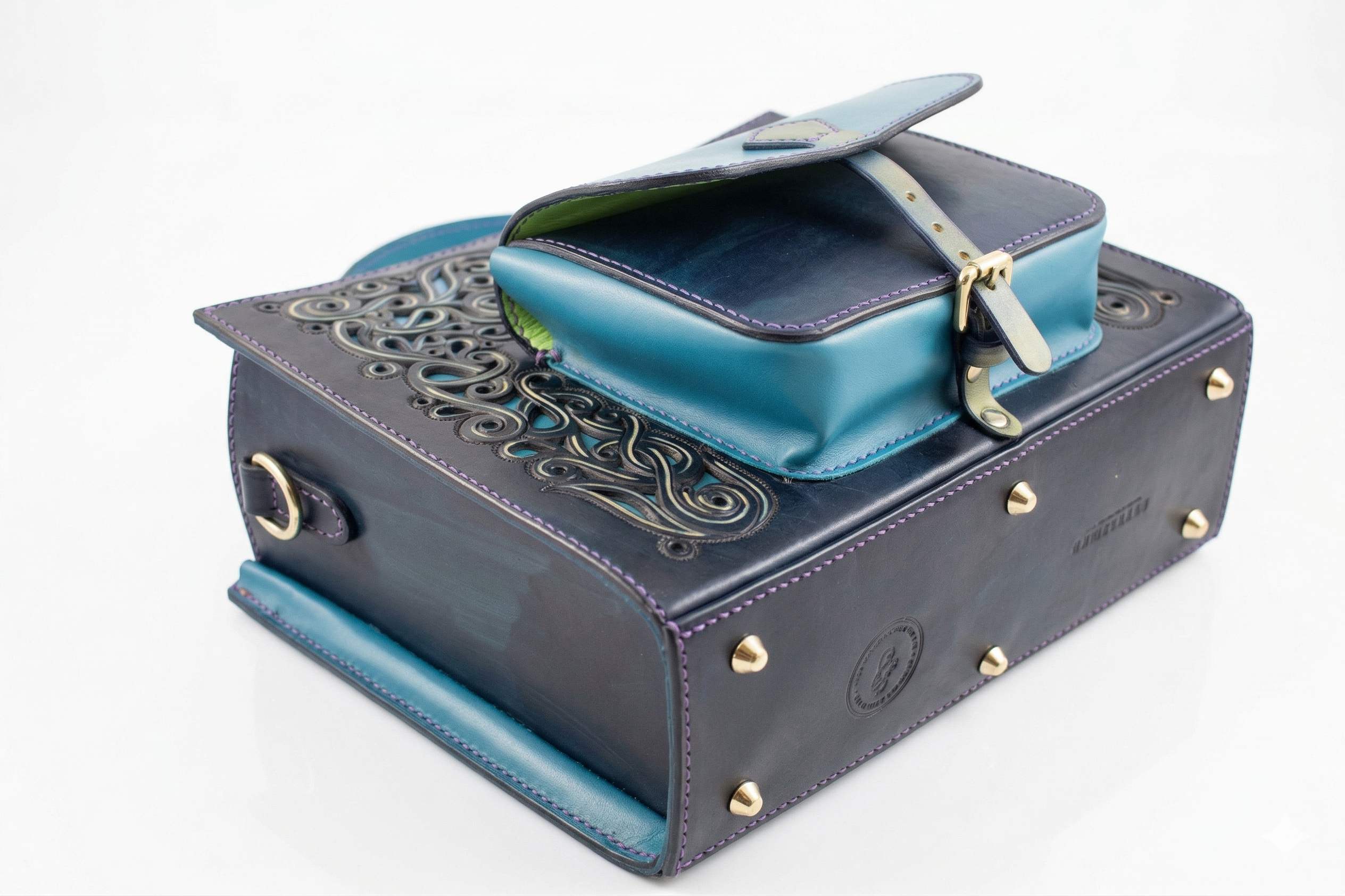 Ez a táska több, mint egy kiegészítő: egy darabka természet, amit magaddal hordhatsz. A finom bőrből, aprólékos kézimunkával készült remekmű minden részlete a szeretetet és az odaadást tükrözi. Az áttört, festett virágminta az áttört díszített kék alapszínen életre kel, mesélve a természet szépségéről.