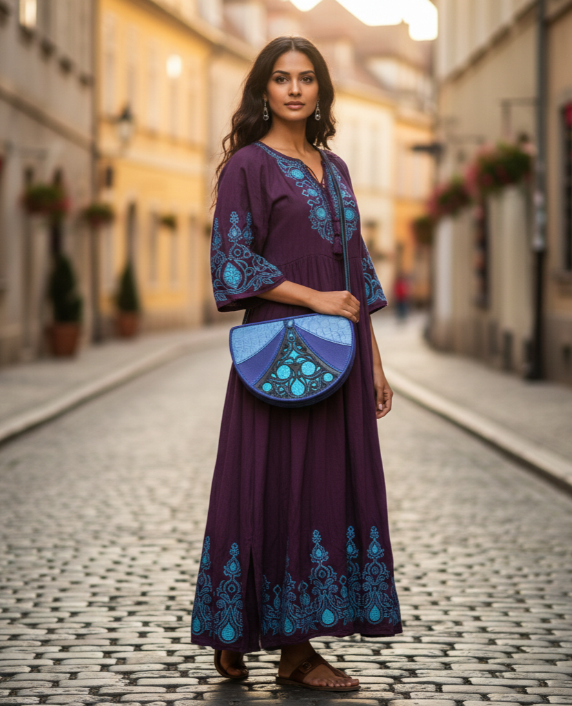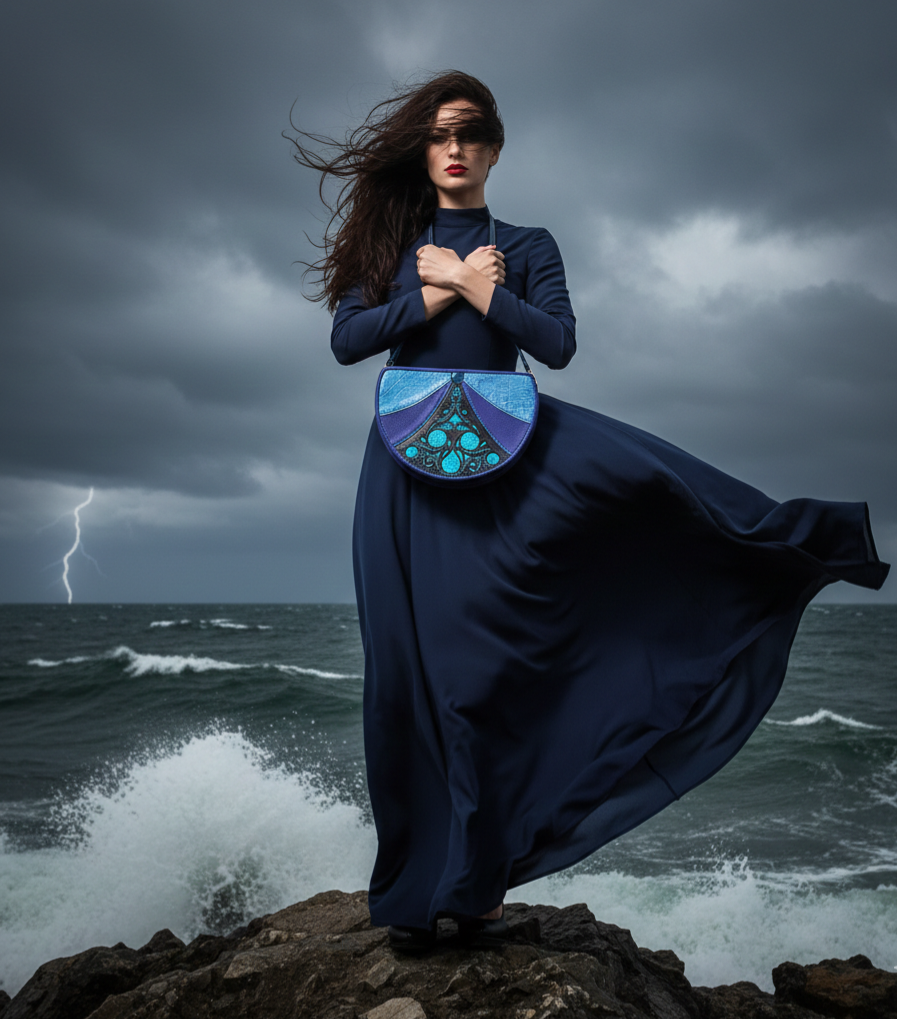 Szín és Spirituális Jelentés: A mélykék vagy türkiz a mélység, az intuíció, az érzelmi stabilitás és a tisztaság szimbóluma. A belső békét és a fluiditást támogatja.Kiknek Ajánljuk: Az empatikus, intuitív és kreatív nőknek, akik értékelik a harmóniát és a lelki nyugalmat.Kiknek NE Ajánljuk: Akik túlságosan racionálisak és elutasítanak minden érzelmi megközelítést.Viselet és Kiegészítők: Világos pasztellszínekkel, szürkével vagy egy hófehér lenvászon ruhával tökéletes. Ajánlott hozzá egy ezüst ékszer vagy egy türkiz betétes öv.Neve: Oceána2. 💨 Levegő Elem Táska